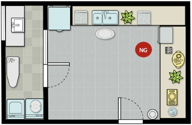 Các không gian chức năng dễ bị bám bẩn như nhà vệ sinh, phòng tắm, nhà bếp đều không được đặt ở trung tâm của căn nhà. Nếu nhà vệ sinh đặt ở chính giữa căn nhà, khí ẩm, khí hôi và vi khuẩn gây hại sẽ phát tán tới các không gian khác. Điều này khiến cho các thành viên trong gia đình dễ mắc một số bệnh, không hề tốt cho sức khỏe.